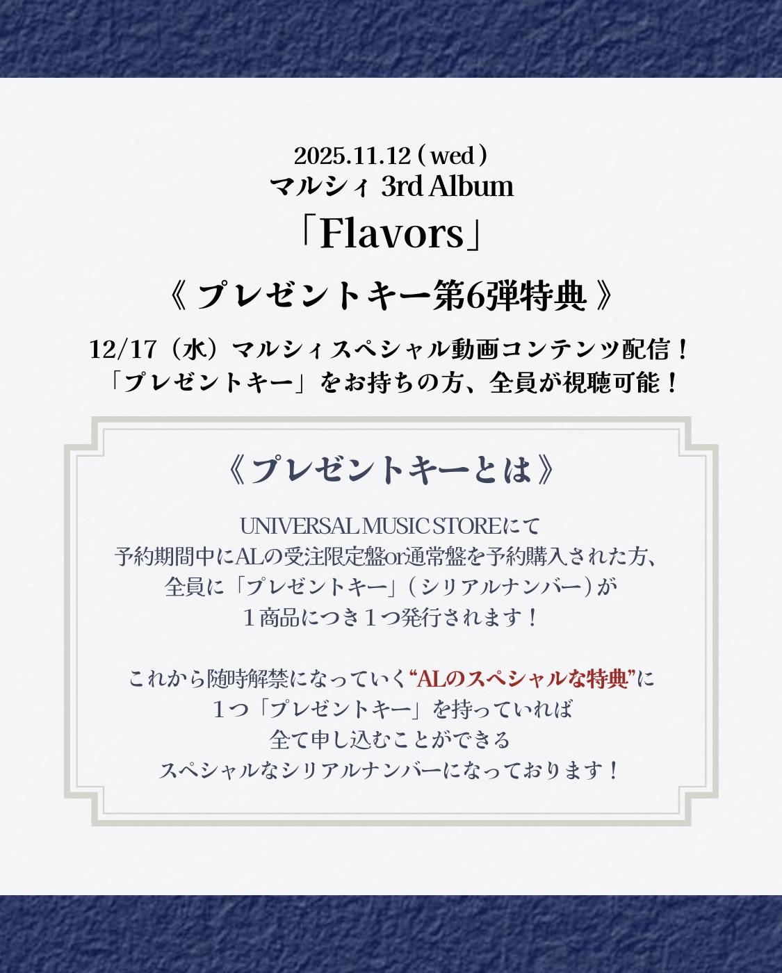 内容:「マルシィ3rd AL「Flavors」スペシャル動画 生配信」