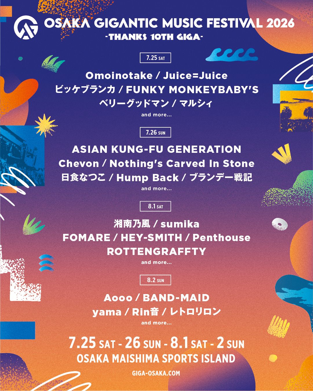 『OSAKA GIGANTIC MUSIC FESTIVAL 2026 -THANKS 10TH GIGA-』出演決定!