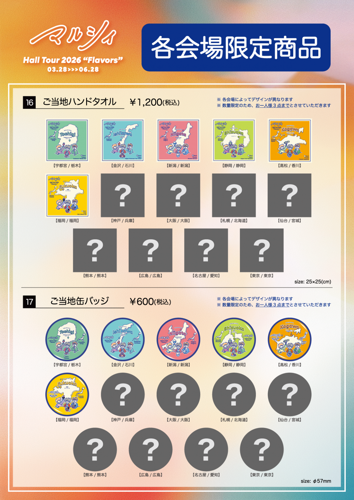 『マルシィ Hall Tour 2026 "Flavors"』 香川、福岡ご当地グッズ解禁‼️